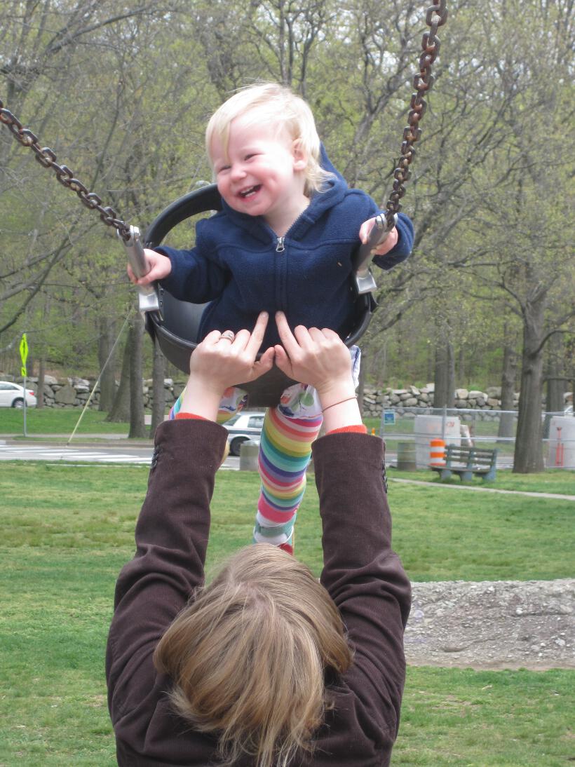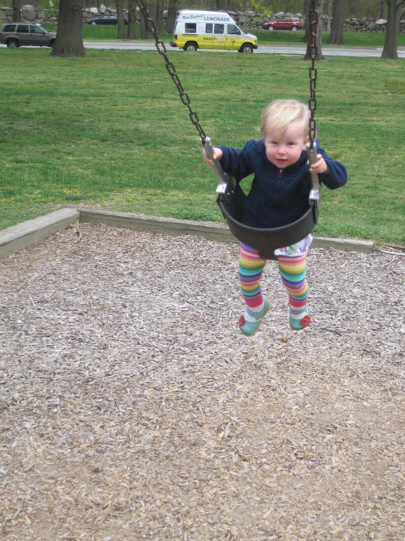 Next up: India Point Park has a playground that, it turns out, is mostly for bigger kids. So Summer helped Madeline play.
